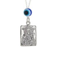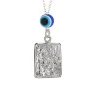 Ασημένιο φυλακτό αυτοκινήτου διπλής όψεως με τον Άγιο Χριστόφορο και την Παναγία και μπλέ χάντρα ή ματάκι