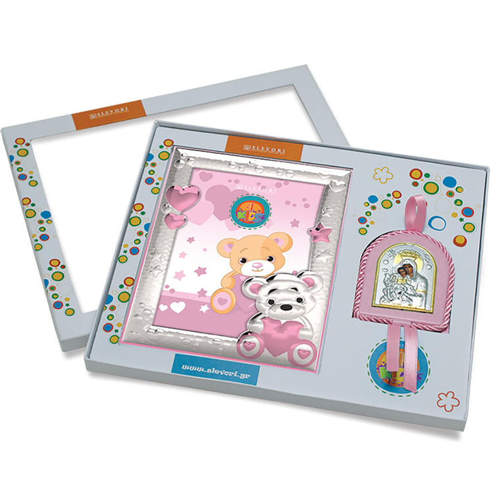 Ασημένιο Παιδικό Σετ με κορνίζα 9060-908AWM-HG-R