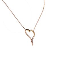 Ροζ χρυσό κολιέ 9 Καρατίων σε σχήμα καρδιάς με λευκές πέτρες ζιργκόν Swarovski.