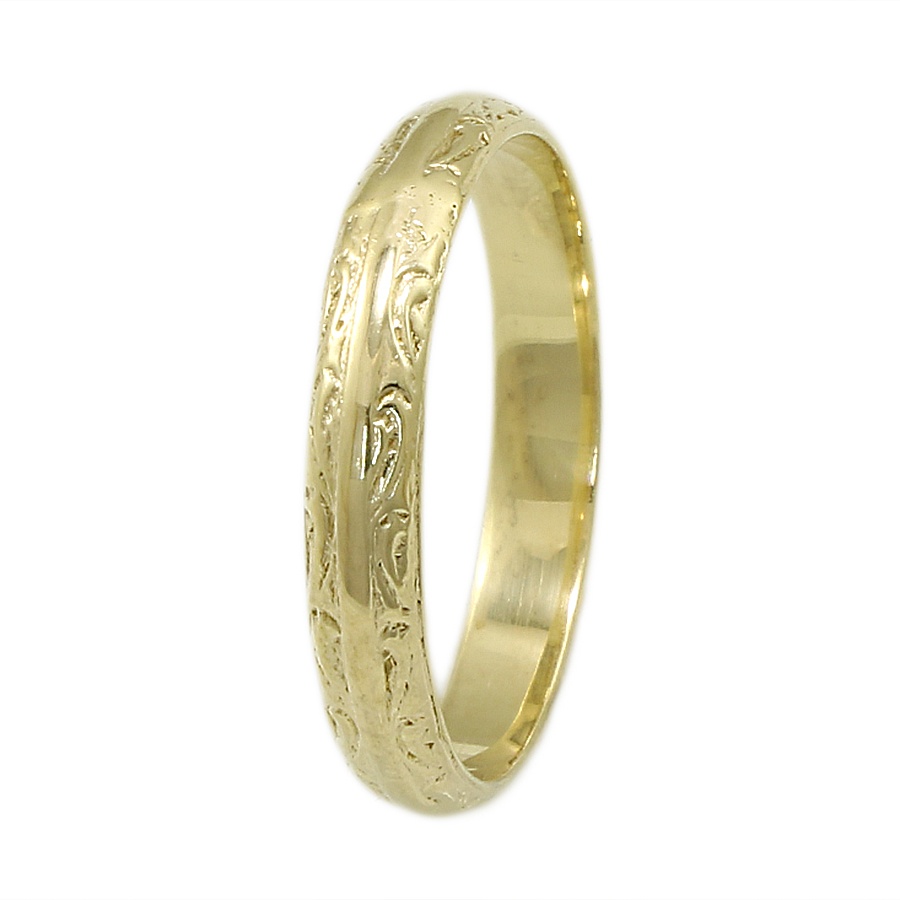 Ασημένια επιχρυσωμένη βέρα γάμου 925° στα 3mm πλάτος, με ανάγλυφα σχέδια και λουστρέ φινίρισμα που θα σας ξετρελάνει.