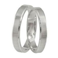 Λευκόχρυση βέρα γάμου και αρραβώνα Μatteo 9 καρατίων σε τετράγωνο σχέδιο, με σατινέ οριζόντιο φινίρισμα και δύο λουστρέ κανάλια στα πλαϊνά στα 3mm πλάτος. Ένα εντυπωσιακό σχέδιο για την πιο ευτυχισμένη ημέρα της ζωής σας!