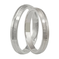 Λευκόχρυση βέρα γάμου και αρραβώνα Μatteo 9 καρατίων στα 3mm, σε όμορφη σατινέ επεξεργασία και ένα λουστρέ κανάλι στο κέντρο της.