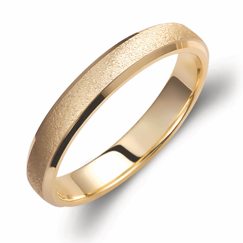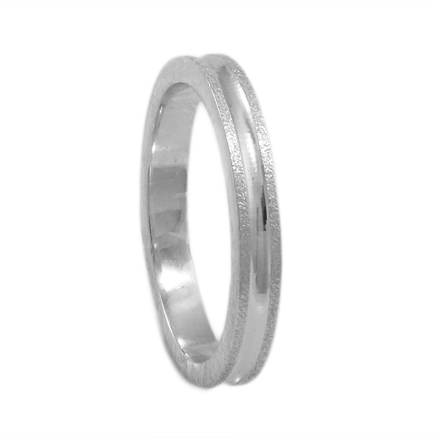 Λευκόχρυση βέρα γάμου και αρραβώνα 9 καρατίων και 3mm πλάτος, με ένα γυαλιστερό κανάλι στο κέντρο της και δύο ματ γραμμές στα πλαϊνά.