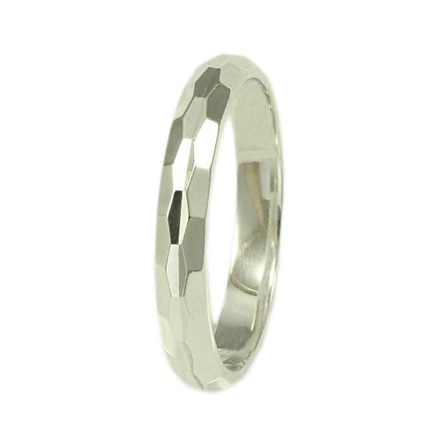 Λευκόχρυση βέρα 9 καρατίων και πλάτος 3mm, σε υπέροχο λουστρέ σχέδιο σε σφυρήλατο στυλ. Μία βέρα για τον γάμο σας που θα κλέψει σίγουρα τις εντυπώσεις!