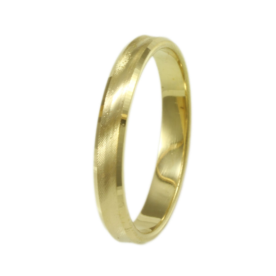 Βέρα γάμου και αρραβώνα 9 καρατίων στα 3mm, σε μοναδικό σχέδιο με καμπύλη επιφάνεια προς τα μέσα και μια εκλεπτυσμένη σατινέ επεξεργασία. Μία μοναδική και διαχρονική χρυσή βέρα που θα λατρέψετε.