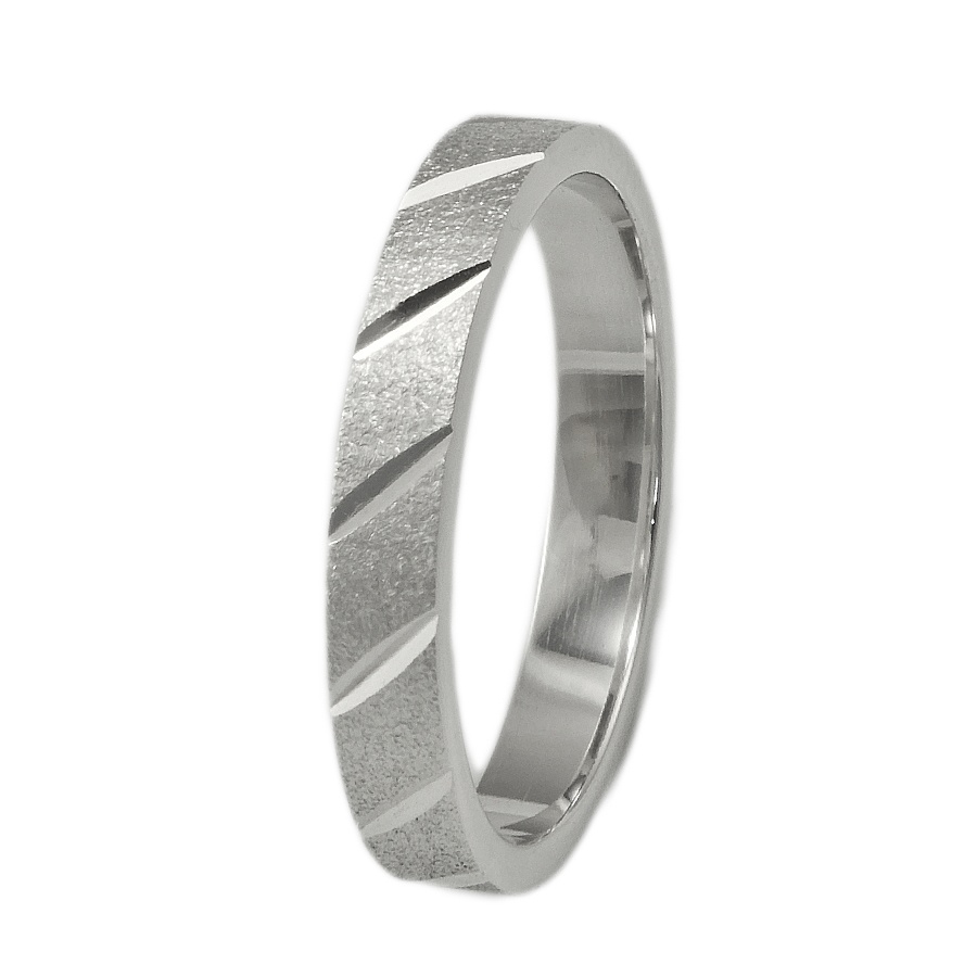 Λευκόχρυση βέρα γάμου και αρραβώνα 9 καρατίων και πλάτος 3mm, με πανέμορφο σχέδιο και εκλεπτυσμένη ματ επεξεργασία με διαγώνια λουστρέ κοψίματα.