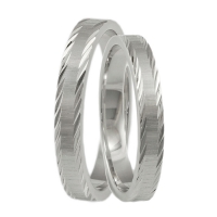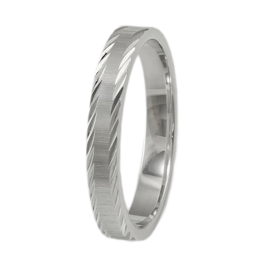 Λευκόχρυση βέρα γάμου και αρραβώνα 9 καρατίων και πλάτος 3mm, με πανέμορφο σχέδιο και εκλεπτυσμένη σατινέ επεξεργασία με διαγώνια λουστρέ κοψίματα στα πλαϊνά. Η βέρα αυτή θα σας ξετρελάνει.