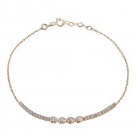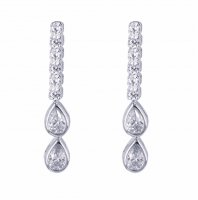 Χρυσά σκουλαρίκια κρεμαστά 14 Καρατίων με ιδιαίτερο μοντέρνο σχέδιο από μονή σειρά με ζιργκόν Swarovski η οποία συνεχίζει με σειρά 2 πετρών σε σχέδιο δάκρυ ζιργκόν Swarovski.