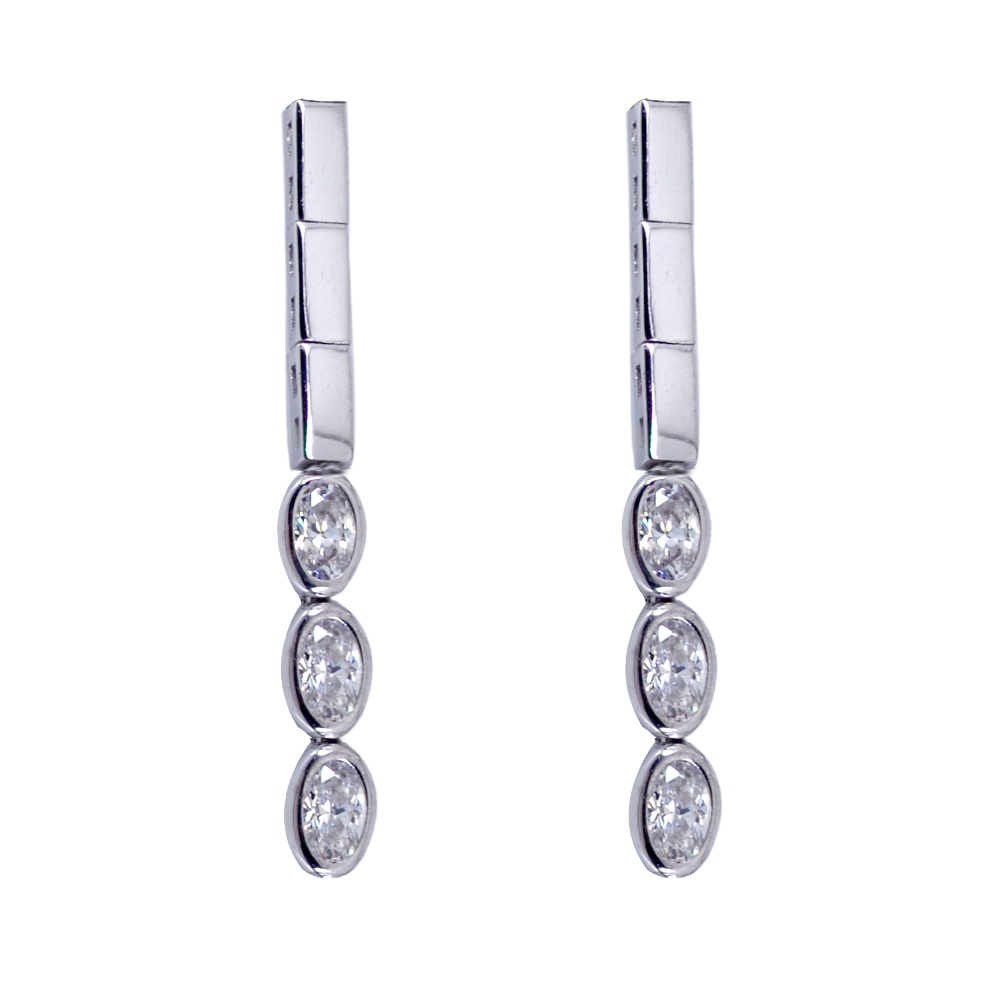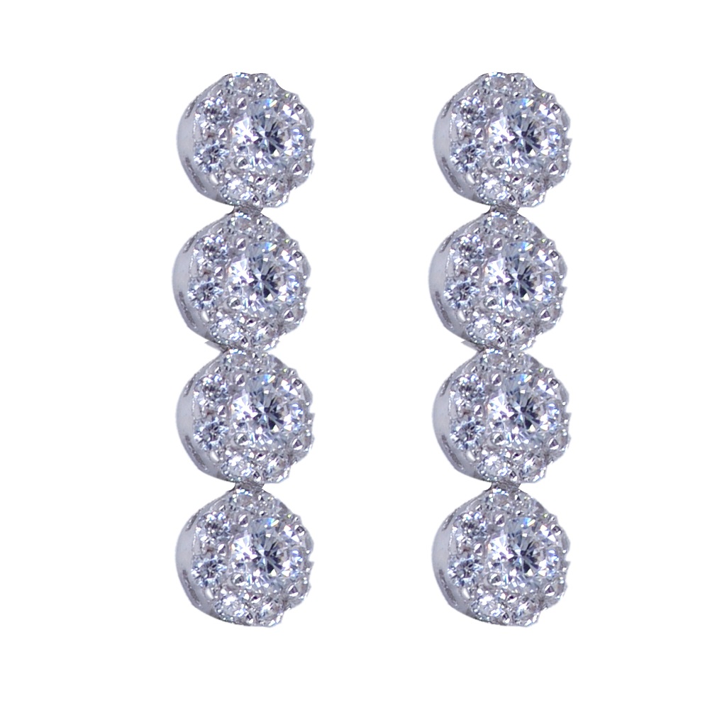 Χρυσά σκουλαρίκια κρεμαστά 14 Καρατίων με ιδιαίτερο μοντέρνο σχέδιο με μονή σειρά ροζέτα πέτρες ζιργκόν Swarovski.