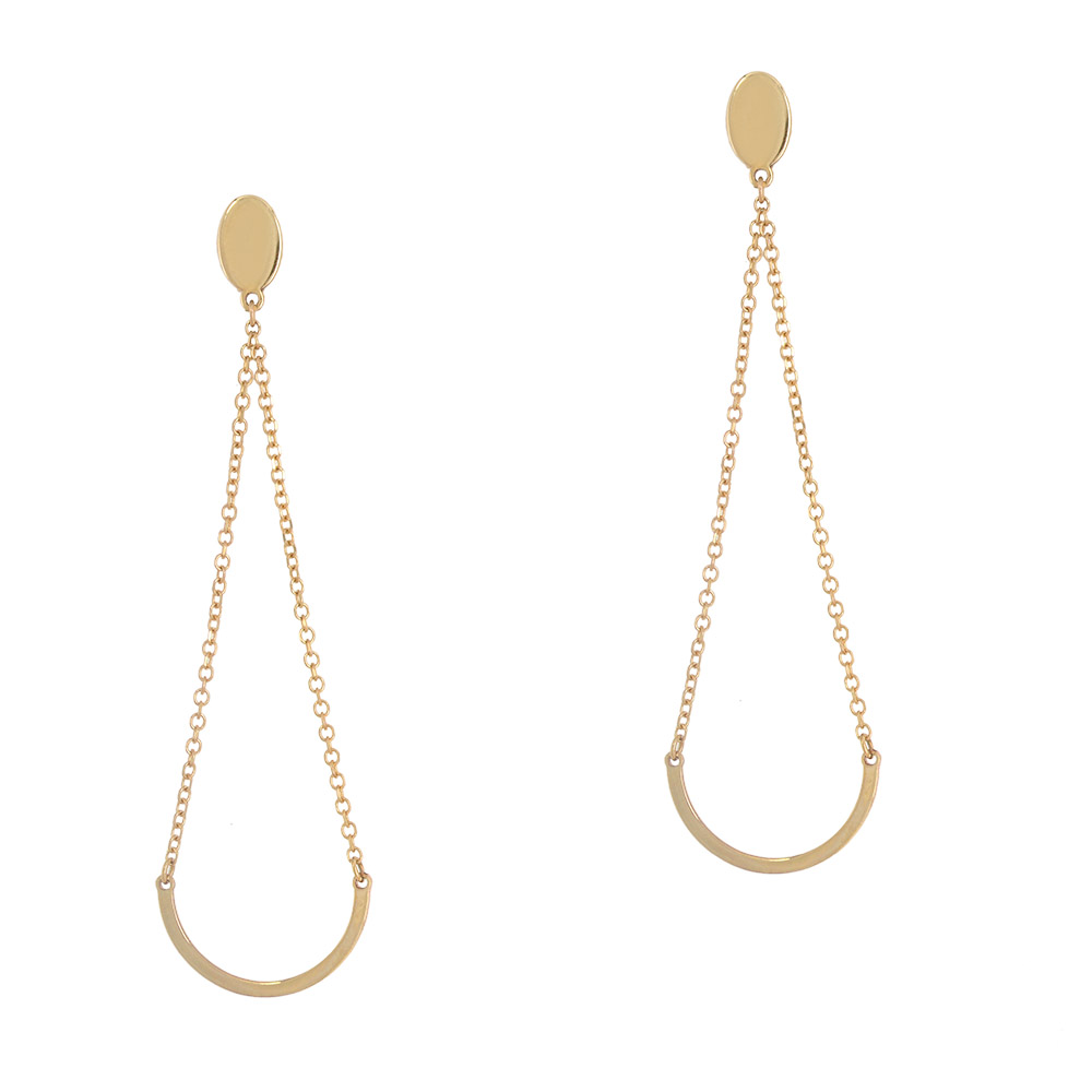 Χρυσά σκουλαρίκια κρεμαστά 9 Καρατίων σε σχήμα μισοφέγγαρο με αλυσίδα