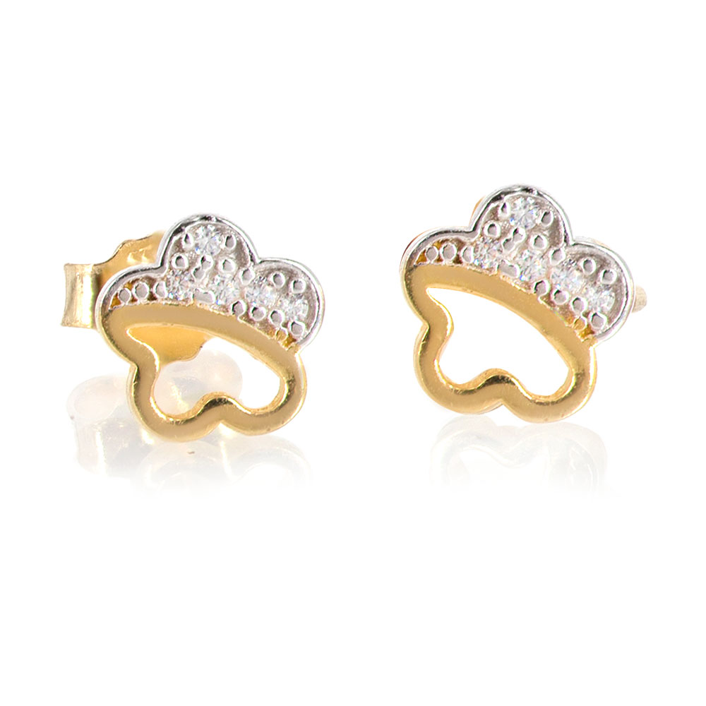 Χρυσά σκουλαρίκια  καρφωτά 14 Καρατίων σε σχήμα αστεριού δίχρωμο με λευκές πέτρες ζιργκόν .