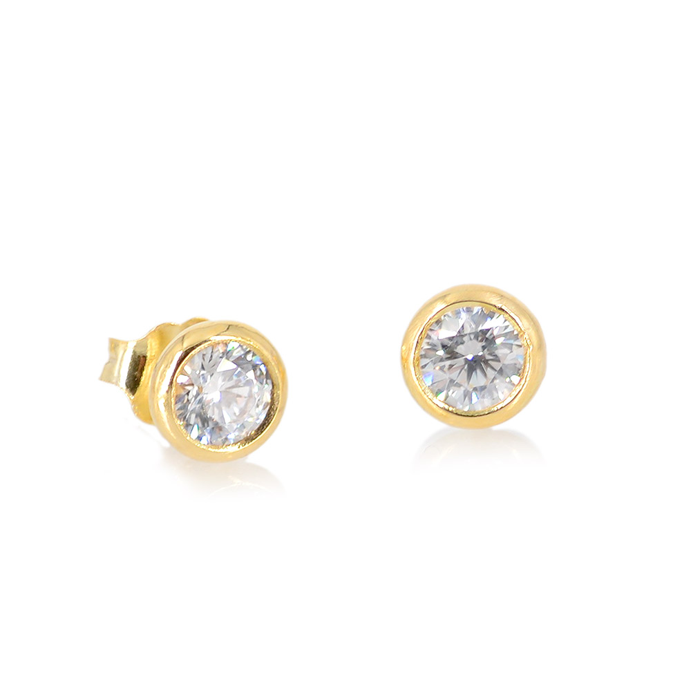 Χρυσά Σκουλαρίκια 9 Καρατίων μονόπετρα με λευκή πέτρα ζιργκόν.