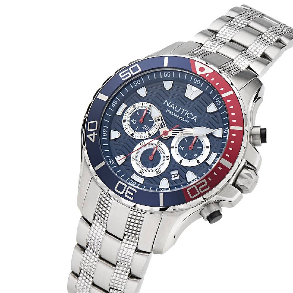 Κάσα: Ασημί ανοξείδωτο ατσάλι με μπλε/κόκκινη στεφάνη
