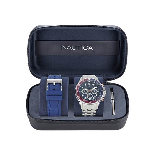 Nautica Nst Chrono Boxset, Men's Watch, Silver Stainless Steel Bracelet NAPNSF407