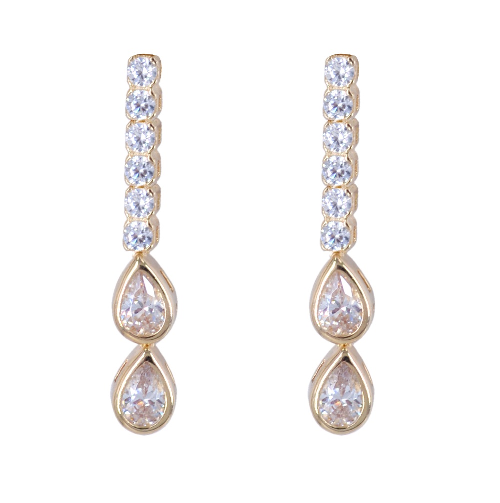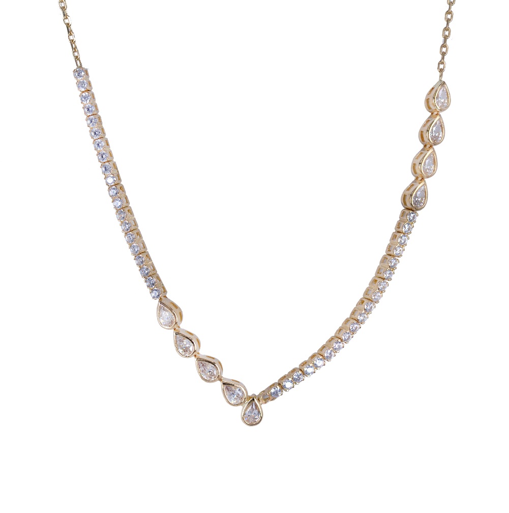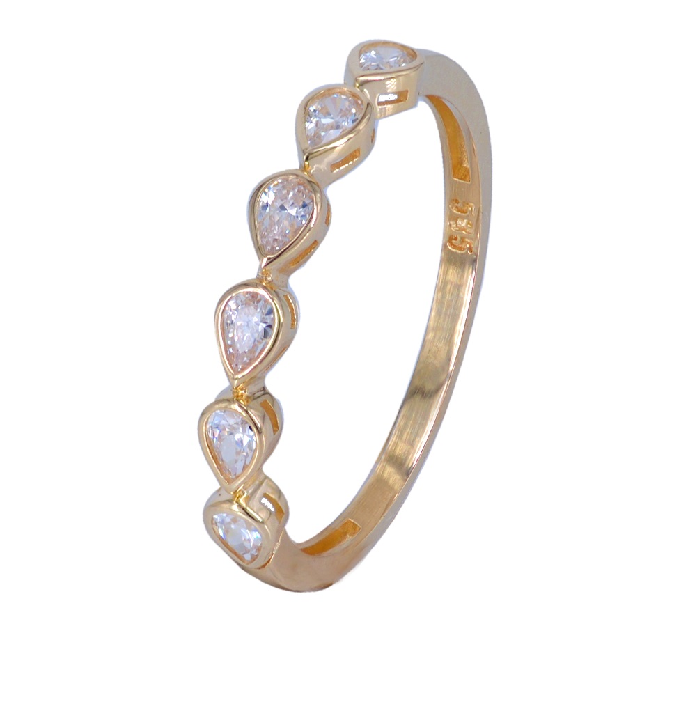 Χρυσό δαχτυλίδι 14 Καρατίων με ιδιαίτερο μοντέρνο σχέδιο από μονή σειρά με ζιργκόν Swarovski σε σχέδιο δάκρυ.