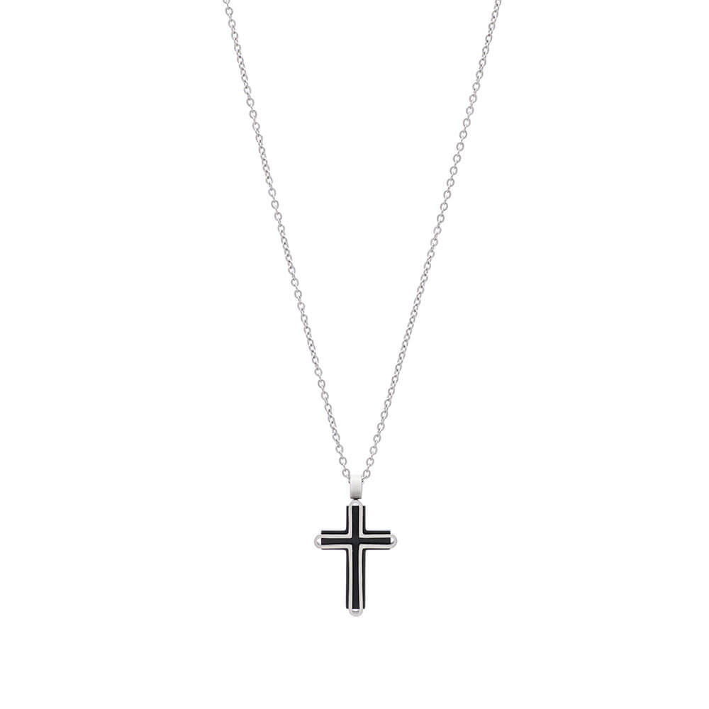 Κολιέ - σταυρός Visetti από ανοξείδωτο ατσάλι σε ασημί χρώμα.