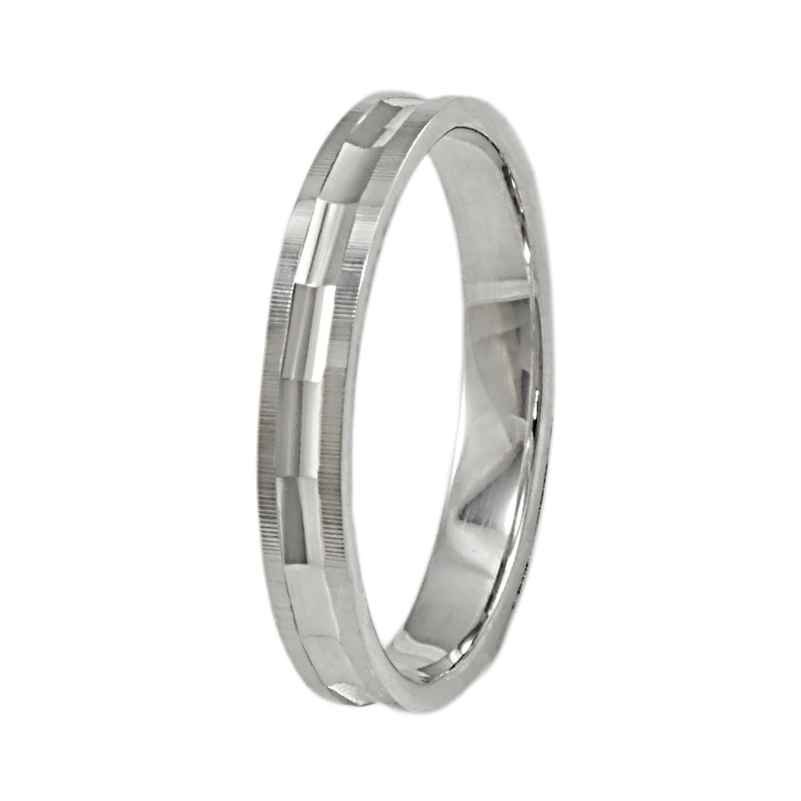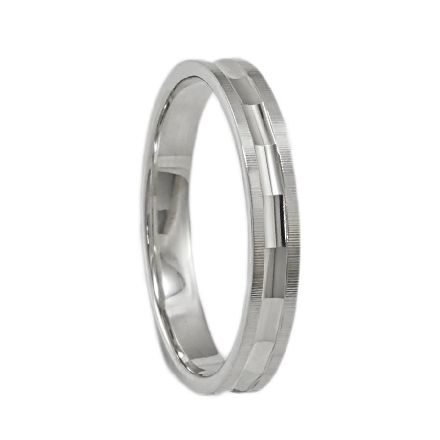 Λευκόχρυση βέρα γάμου και αρραβώνα 9 καρατίων και 3mm πλάτος, σατινέ με ένα λουστρέ κανάλι στο κέντρο της. Μία βέρα που θα φοράτε καθημερινά.