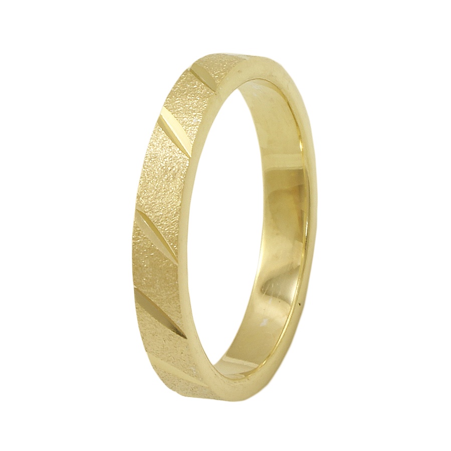 Χρυσή βέρα γάμου και αρραβώνα 9 καρατίων και πλάτος 3mm, με πανέμορφο σχέδιο και εκλεπτυσμένη ματ επεξεργασία με διαγώνια λουστρέ κοψίματα.
