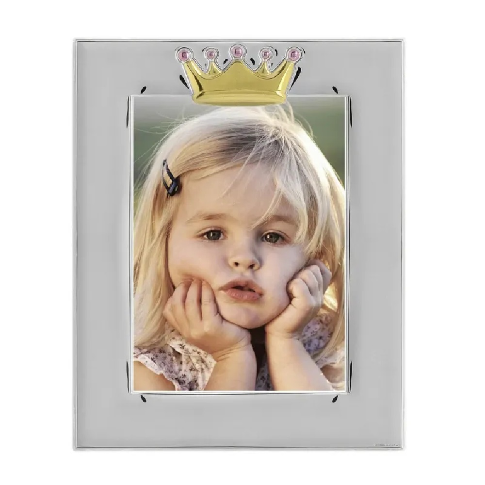 Παιδική κορνίζα φωτογραφίας για αγόρι ή κορίτσι από ασήμι 925 με σχέδιο κορώνα επιχρυσωμένη.