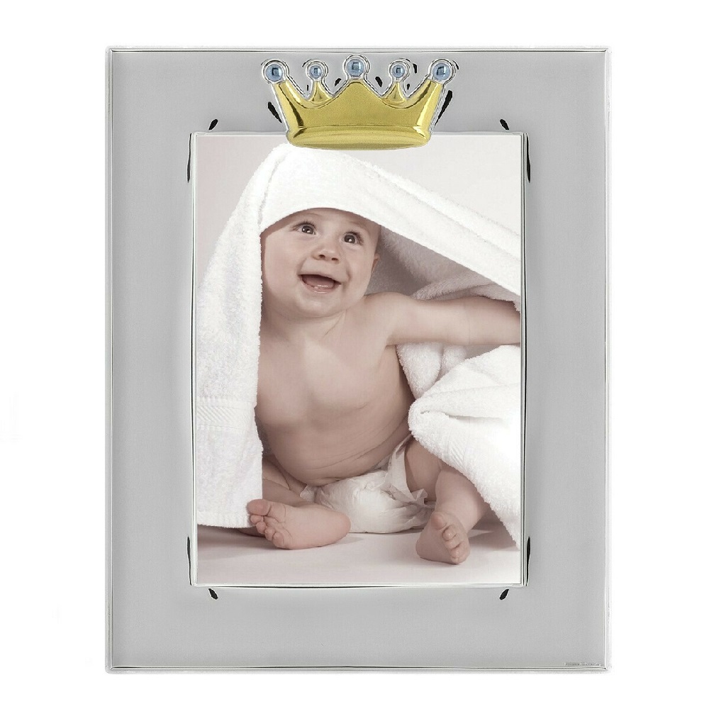 Παιδική κορνίζα φωτογραφίας για αγόρι από ασήμι 925 με σχέδιο κορώνα επιχρυσωμένη.