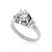 Μονόπετρο χρυσό 14 Καρατίων με λευκή πέτρα ζιργκόν Swarovski, σχέδιο καλαθάκι.