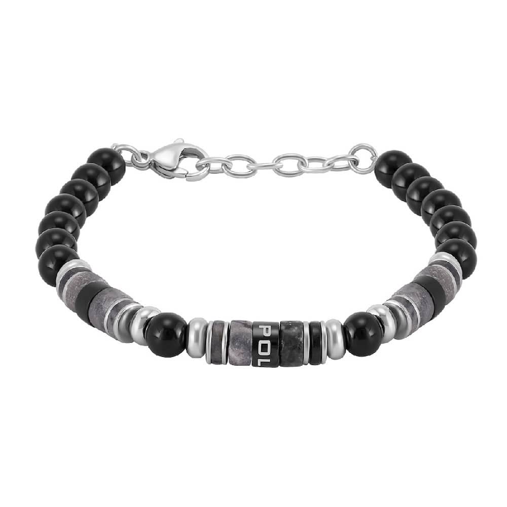 Ανδρικό βραχιόλι Police από ανοξείδωτο ατσάλι σε ασημί χρώμα και πέτρες σε αποχρώσεις μαύρο / γκρι.