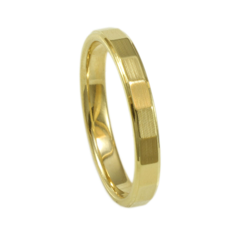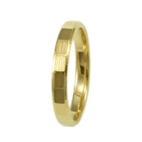 Ασημένια επιχρυσωμένη βέρα – δαχτυλίδι 925° με πλάτος 3mm, σε μοντέρνο σχέδιο με σατινέ επιφάνεια, πάνω στην οποία σχηματίζονται τετράγωνα. Μία βέρα που θα κλέψει τις εντυπώσεις με την πρωτοτυπία της!