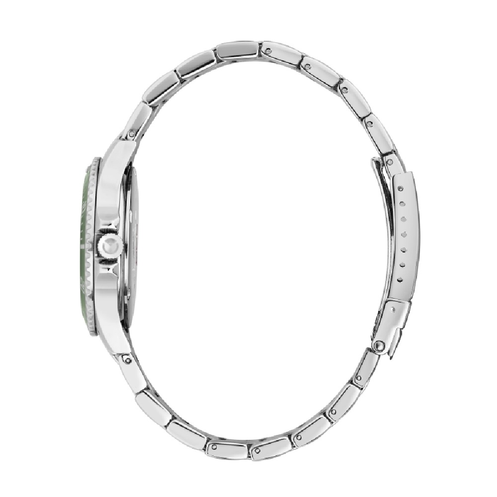 Κάσα: Ασημί με πράσινη σκούρα μεταλλιζέ στεφάνη από ανοξείδωτο ατσάλι