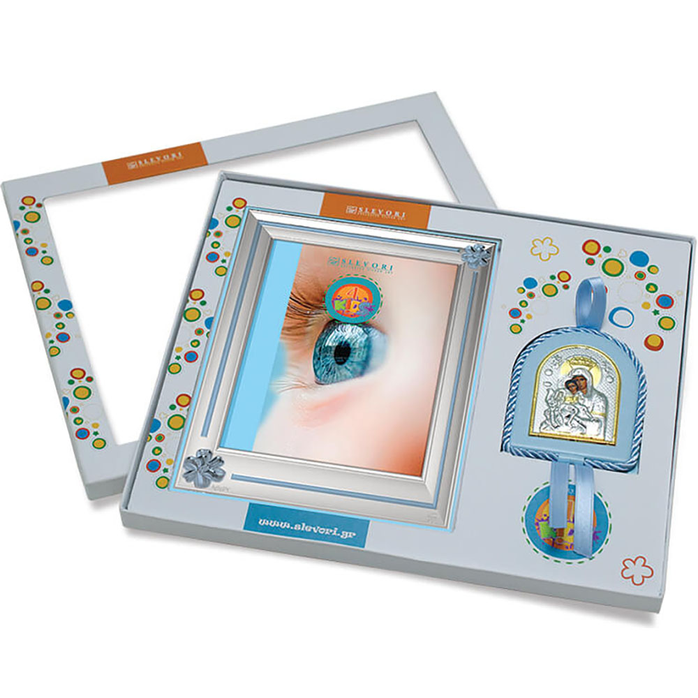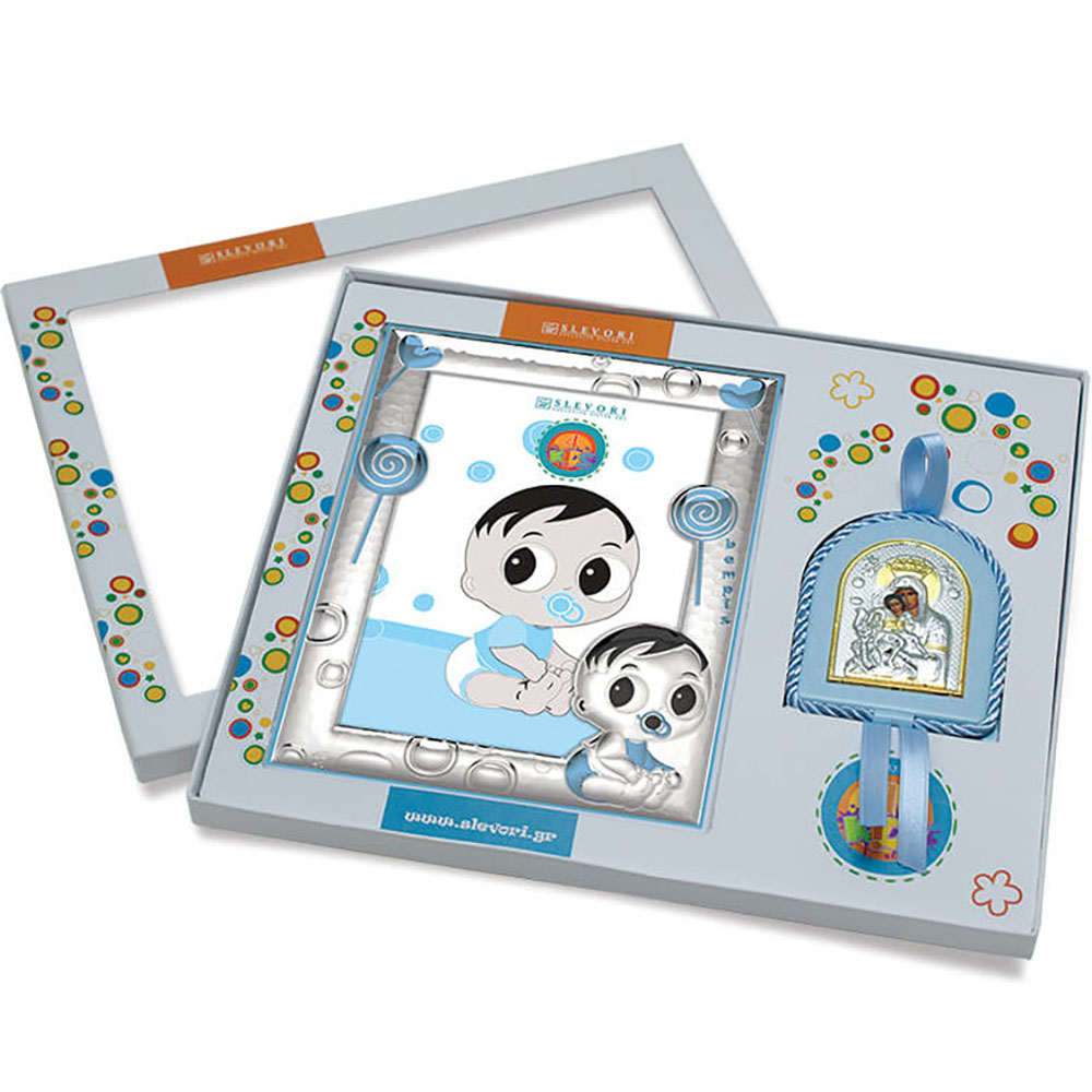 Ασημένιο Παιδικό Σετ με κορνίζα Μπέμπης, 9060-903AWM-HG-B