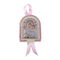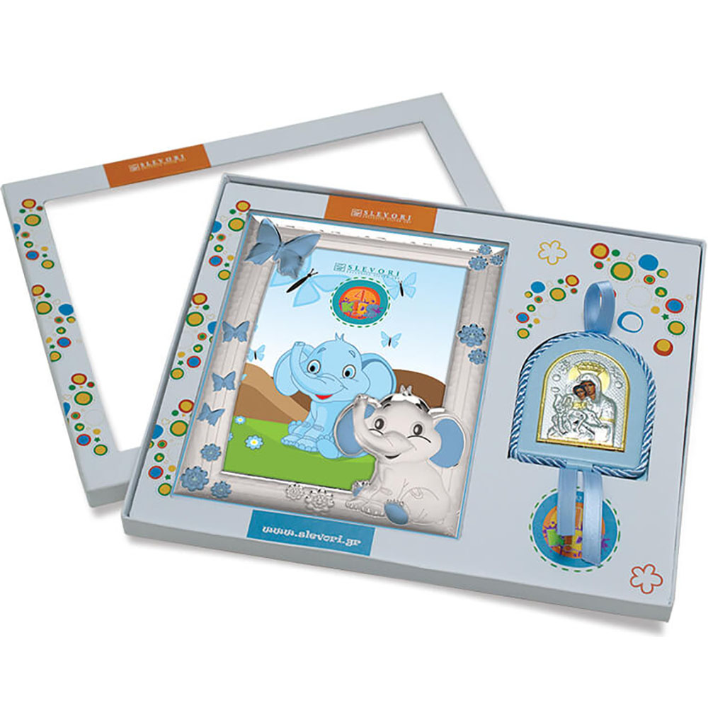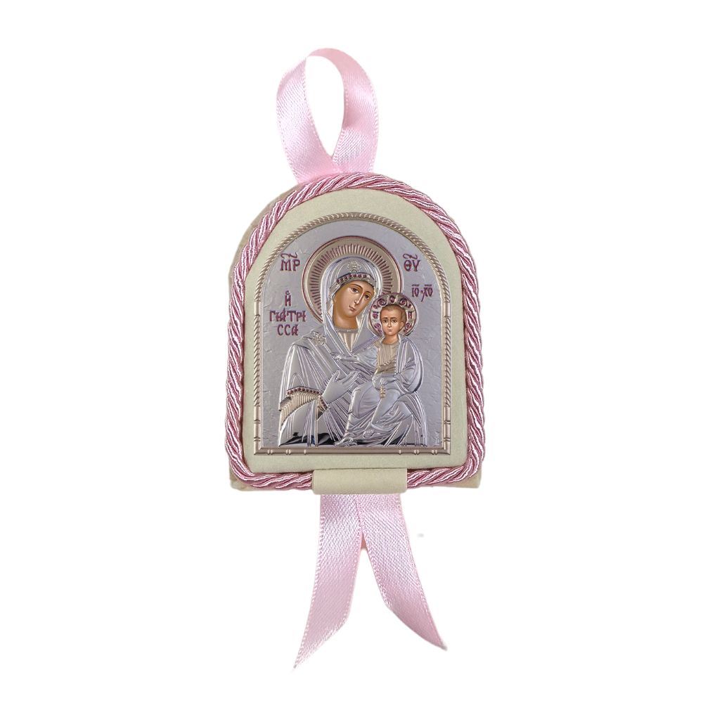 Ασημένιο παιδικό σετ 925 Αρκουδάκι και εικόνα κούνιας με την Παναγία την Γιάτρισσα.