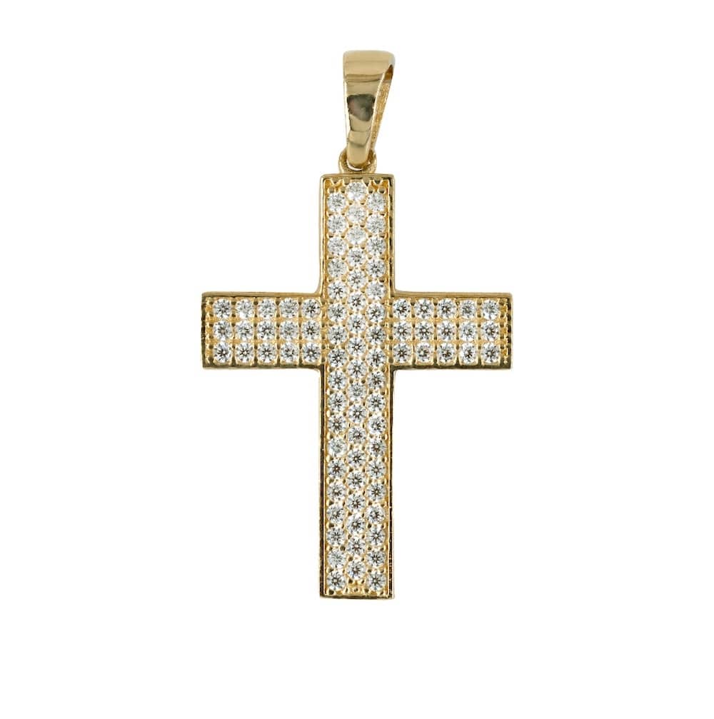 Χρυσός σταυρός 9 Καρατίων, γυναικείος, με λουστρέ φινίρισμα και πέτρα ζιργκόν Swarovski®.