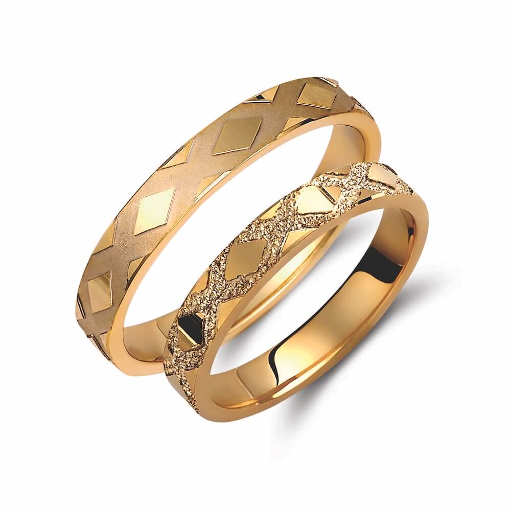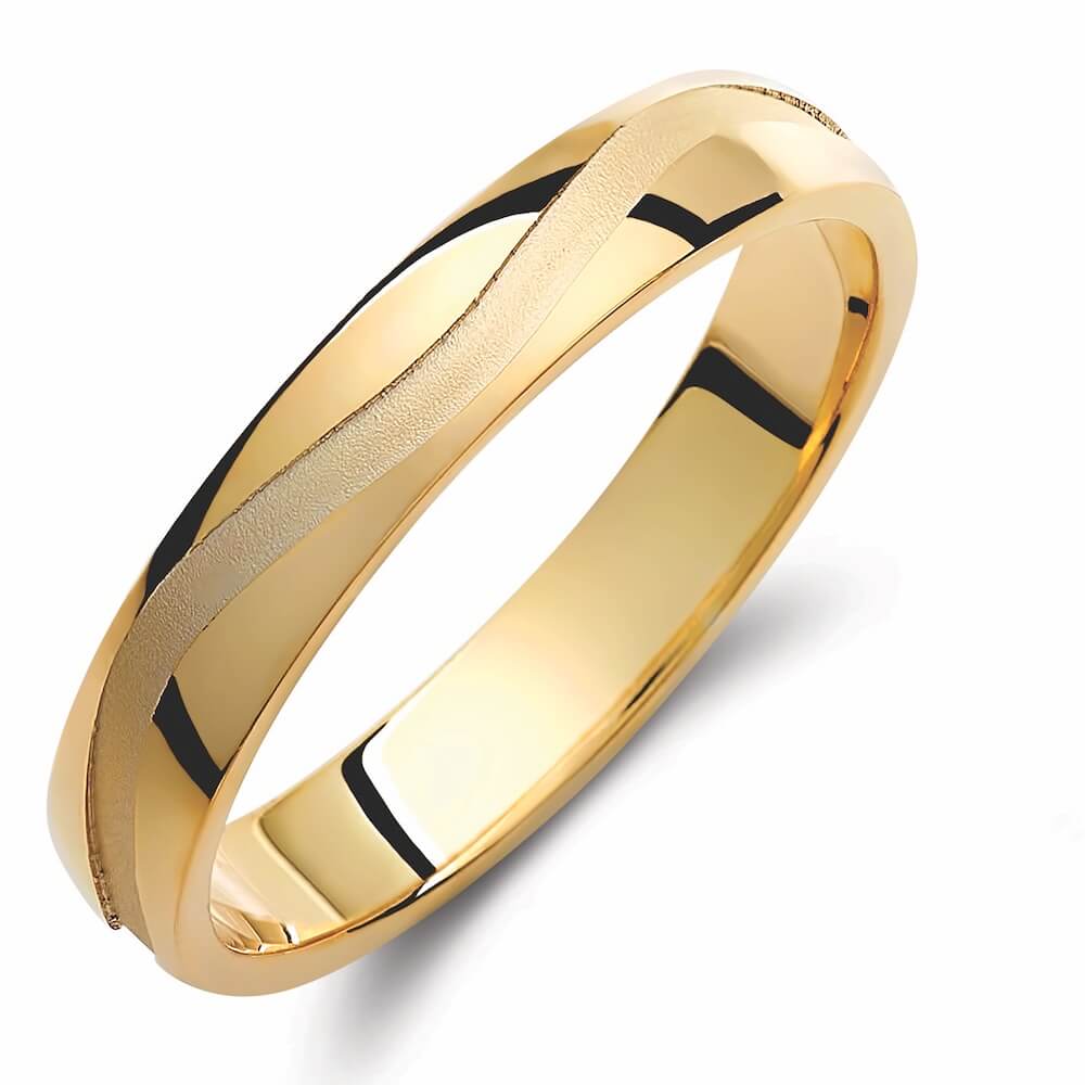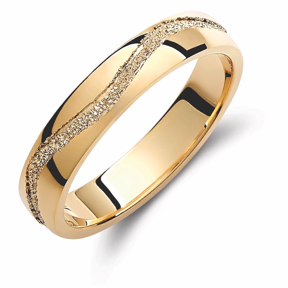 Χρυσή βέρα γάμου και αρραβώνα Valauro 8 καρατίων και πλάτος 4mm, λουστρέ με διαμανταριστό φινίρισμα στη μέση σε κυματιστό, περίτεχνο σχέδιο.