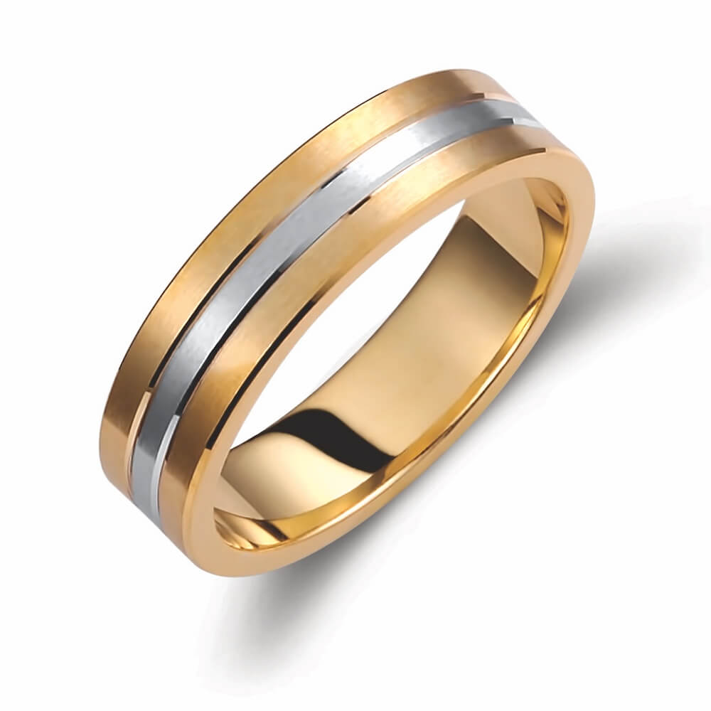 Δίχρωμη βέρα γάμου και αρραβώνα Valauro 8 καρατίων και πλάτος 5mm, λευκή και κίτρινο, λουστρέ σε διαχρονική γραμμή.