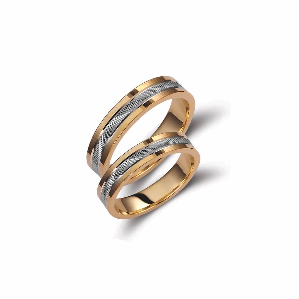 Ασημένια βέρα γάμου και αρραβώνα Valauro 925° και πλάτος 4.5mm, δίχρωμη, λουστρέ με περίτεχνο μοντέρνο σχέδιο.