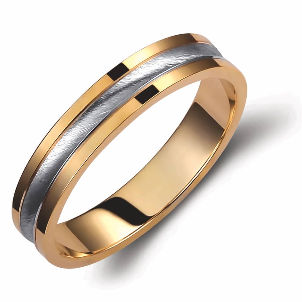 Ασημένια βέρα γάμου και αρραβώνα Valauro 925° με πλάτος 4.5mm, δίχρωμη με κίτρινο χρυσό λουστρέ στις άκρες και λευκό διαμανταριστό φινίρισμα στη μέση.