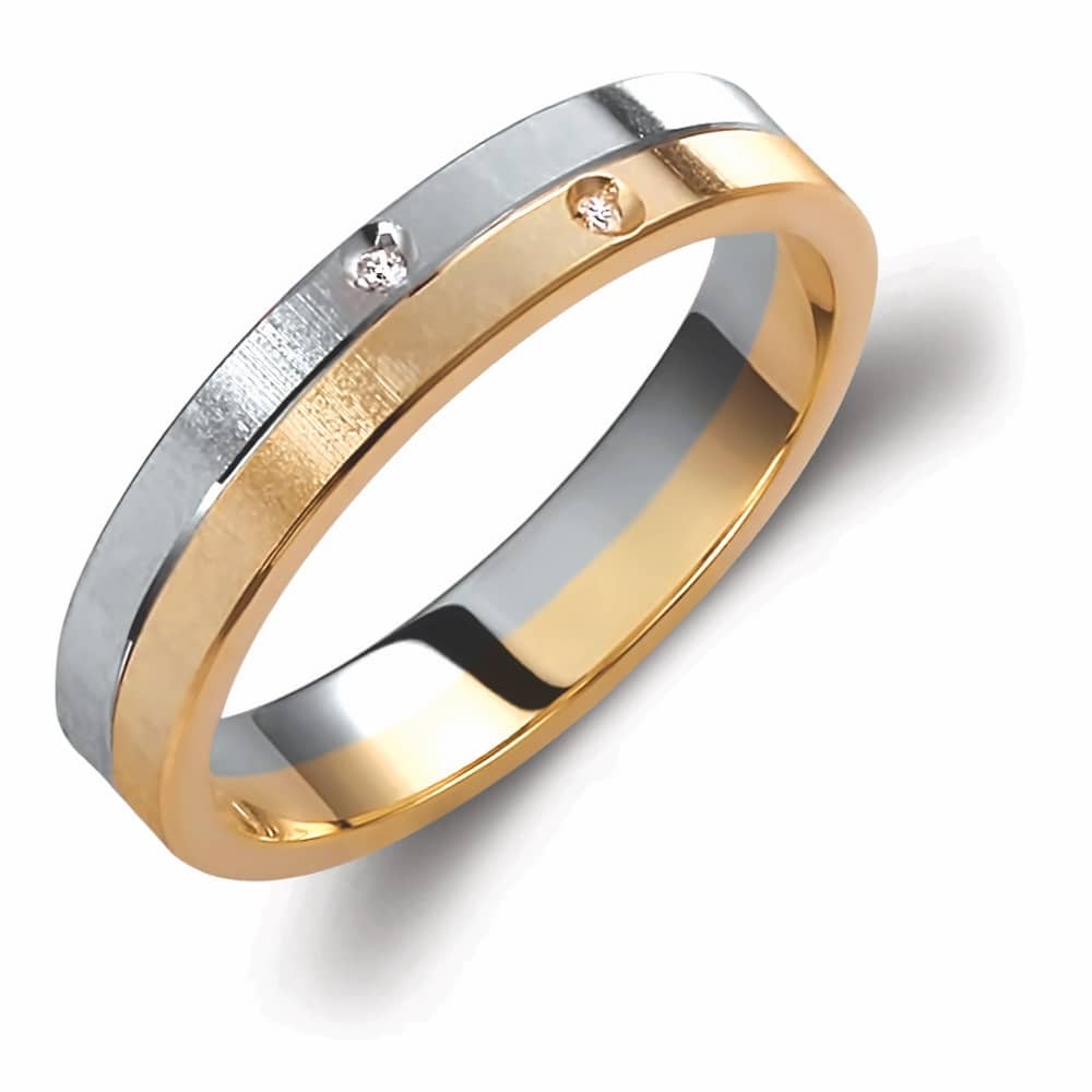 Ασημένια δίχρωμη βέρα γάμου και αρραβώνα Valauro 925° με πλάτος 4.5mm, με λευκό χρώμα και κίτρινο επιχρύσωμα, ματ σε διαχρονική γραμμή.