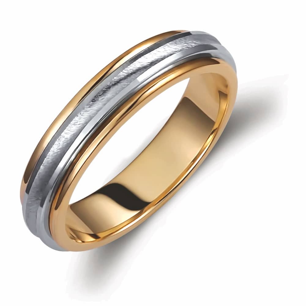 Ασημένια βέρα γάμου και αρραβώνα Valauro 925° και πλάτος 4.5mm, δίχρωμη, σε μοντέρνα, φαρδιά γραμμή με ματ επιφάνεια.