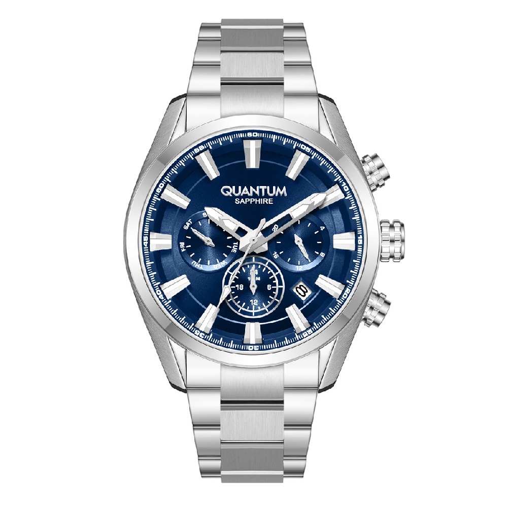 Κάσα: Ασημί ανοξείδωτο ατσάλι με μπλε στεφάνη