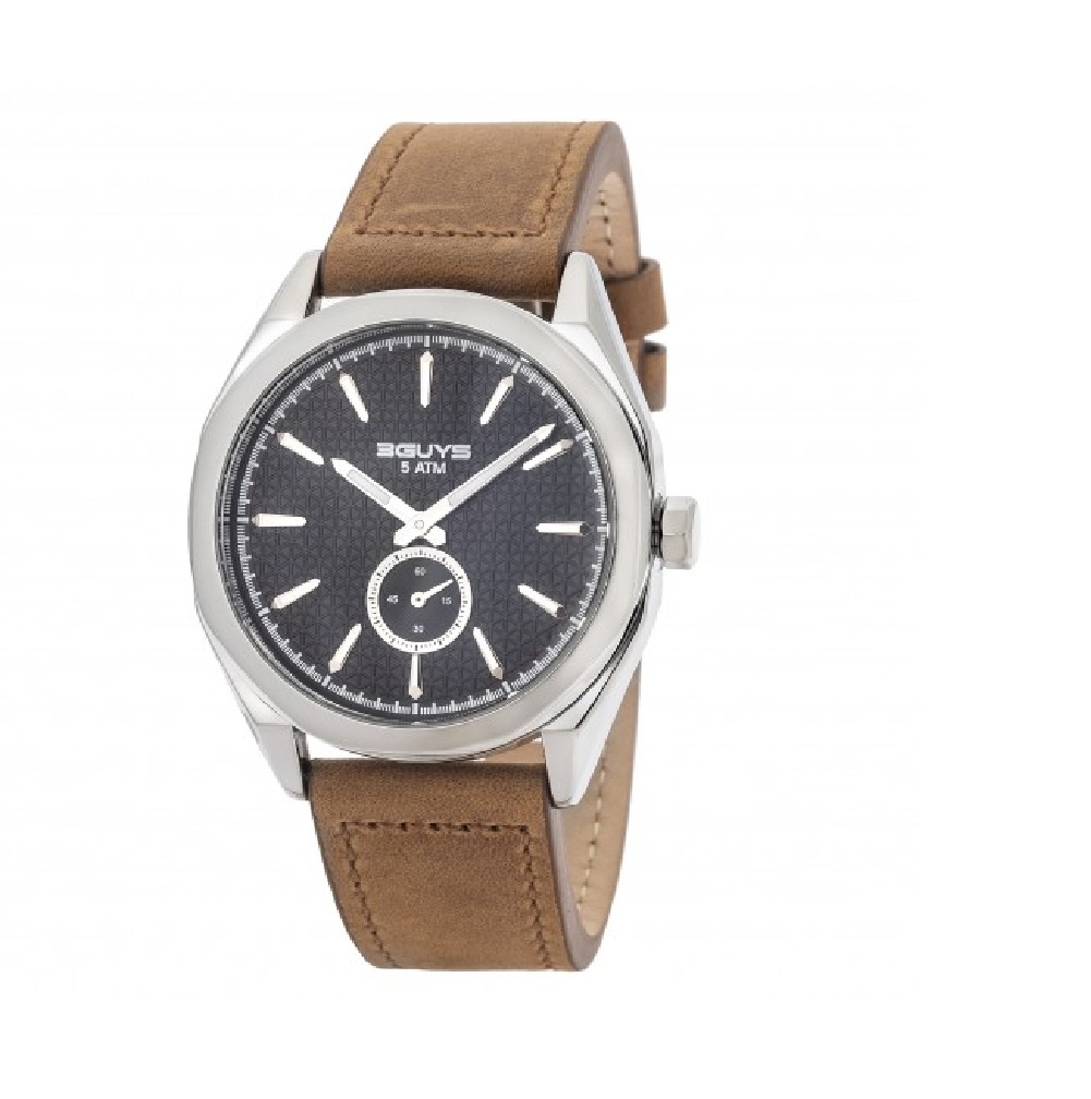 3Guys Men's Watch Brown Leather Strap 3G82005