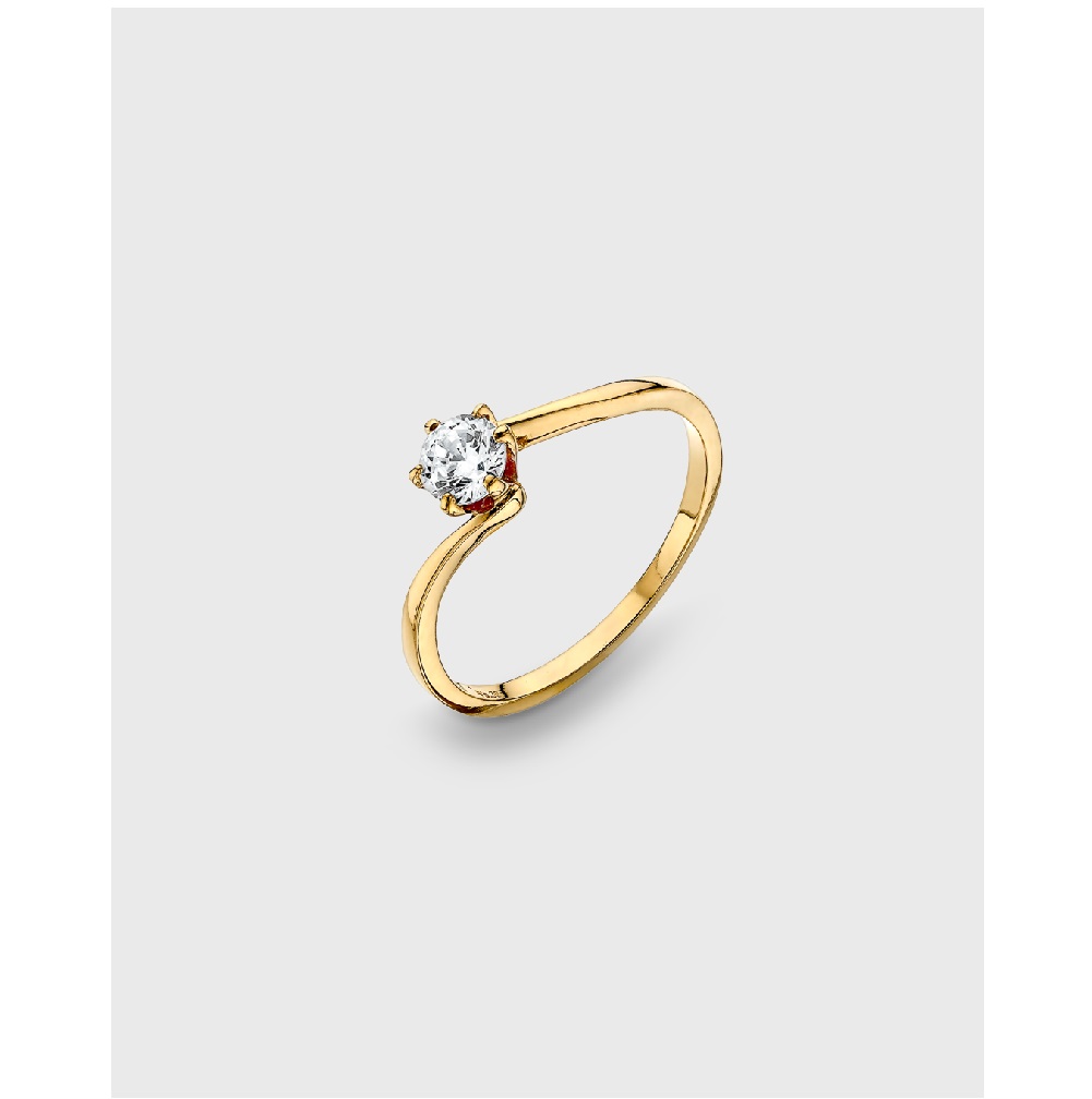 Μονόπετρο δαχτυλίδι από τη σειρά Solitaire με εντυπωσιακό λευκό ζιργκόν σε Brilliant κόψιμο, δεμένο σε σχήμα φλόγας. Το ζιργκόν στηρίζεται σε γάμπα από 925° σε κίτρινο χρυσό 18 καρατίων επιμετάλλωση. Η διάμετρος της κεντρικής πέτρας είναι 4.5 mm και ισοδυναμεί με διαμάντι 0.3 καρατίων.