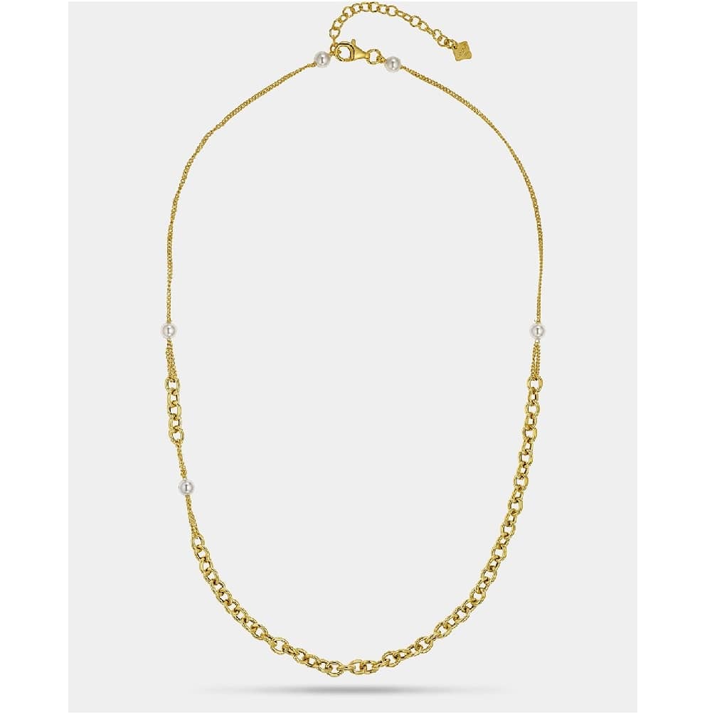 Ένα κόσμημα που ισορροπεί ανάμεσα στο κλασικό και το σύγχρονο. Οι εναλλαγές ανάμεσα σε λεπτές αλυσίδες και statement κρίκους χαρίζουν ρυθμό και κίνηση, ενώ τα μαργαριτάρια προσθέτουν μια διακριτική πινελιά πολυτέλειας, VOGUE.