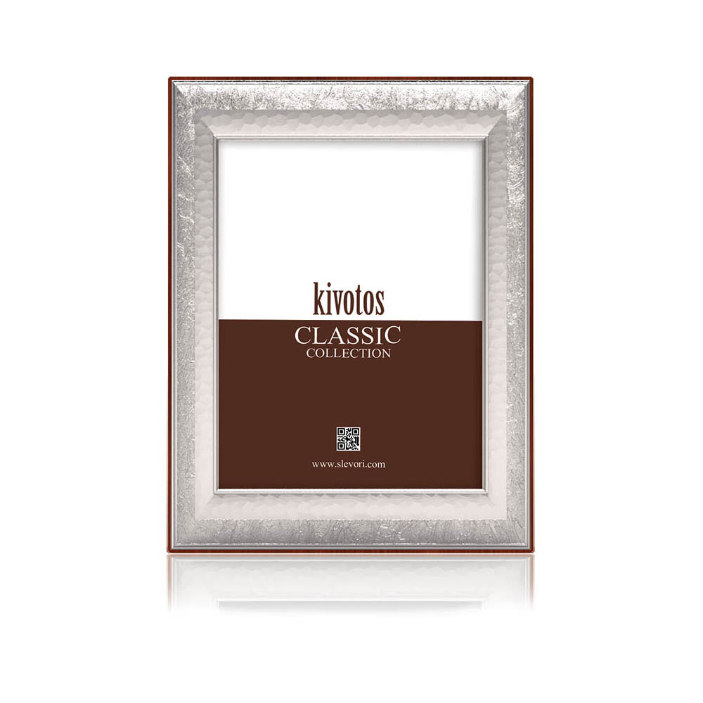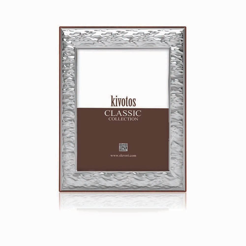 Κορνίζα από ασήμι 925, Slevori, με οριζόντιο τσαλάκωμα εφέ και ξύλινη πλάτη σε καφέ χρώμα.