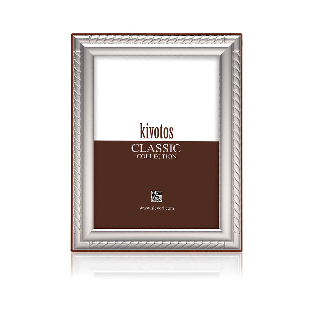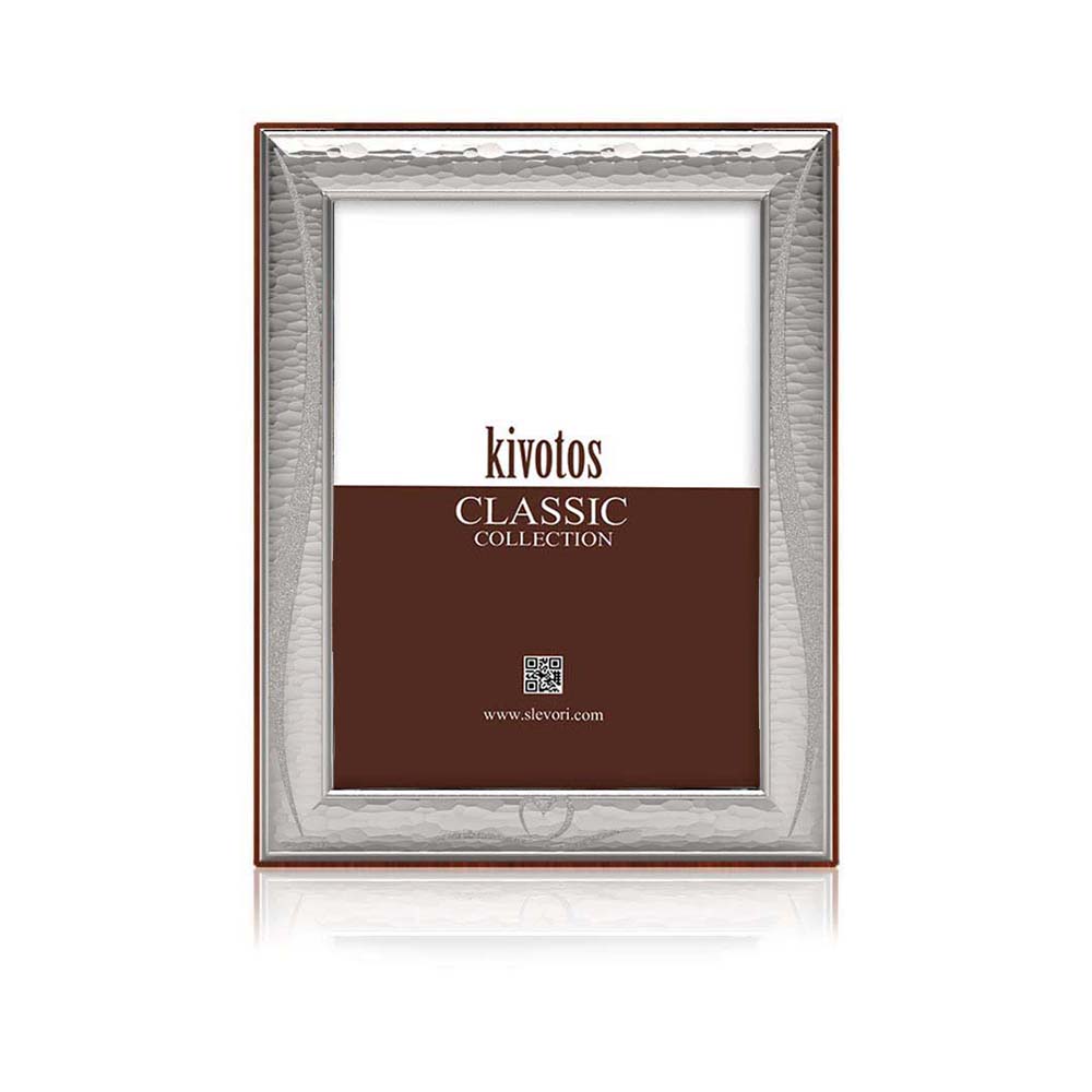 Κορνίζα από ασήμι 925, Slevori, σε ορθογώνιο σχήμα με σχέδιο καρδιά, σφυρήλατο φινίρισμα και ξύλινη πλάτη σε καφέ χρώμα.