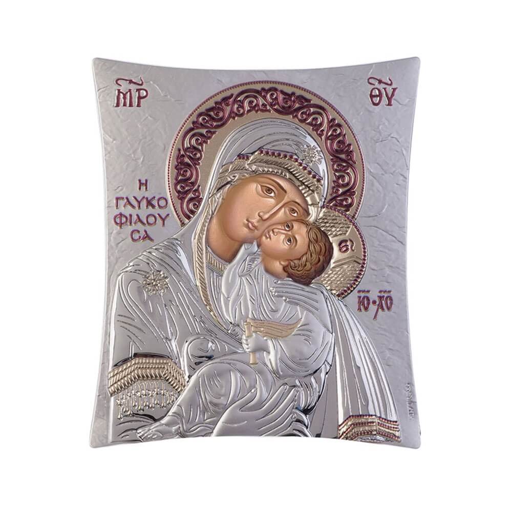 Ασημένια Εικόνα Παναγία Γλυκοφιλούσα, 16X20, Slevori 9875-00116TBR1FWD