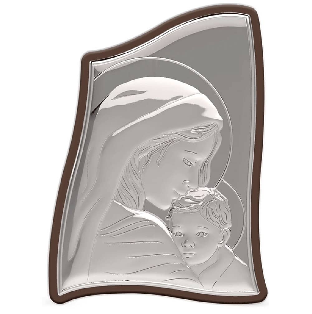 Ασημένια εκκλησιαστική εικόνα, ασύμμετρη, που απεικονίζει την Ευλογημένη Μητέρα.