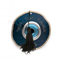 Επιτραπέζιο γούρι με στρογγυλό μάτι σε χρυσαφί χρώμα και λευκή πλάτη από ξύλο. Επάνω αναγράφεται η ευχή " Υγεία - Τύχη - Ευτυχία". Δεν υπάρχουν πιο ωραίες ευχές για να στολίζουν το σπίτι σας ή το σπίτι των αγαπημένων σας προσώπων.